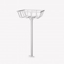 A lixeira é confeccionada em aço e recebe pintura eletrostática branca.