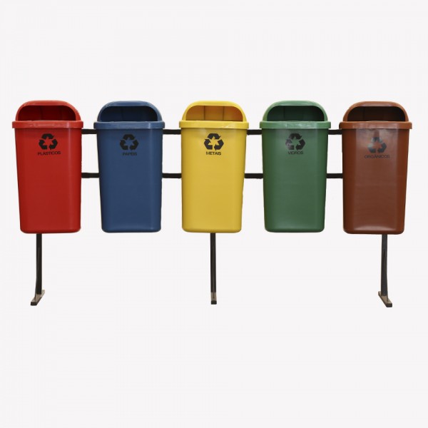 Suporte Seletivo Papeleira LP COM 5 Lixeiras 50 Litros