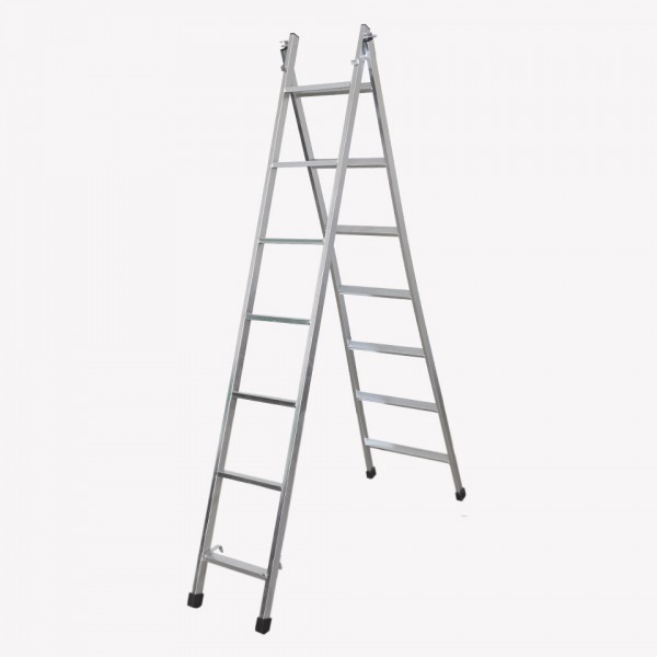 Possui sapatas antiderrapantes, sistema de articulação que possibilita seu uso como escada tipo pintor e sistema de travamento que envolve por completo o degrau.