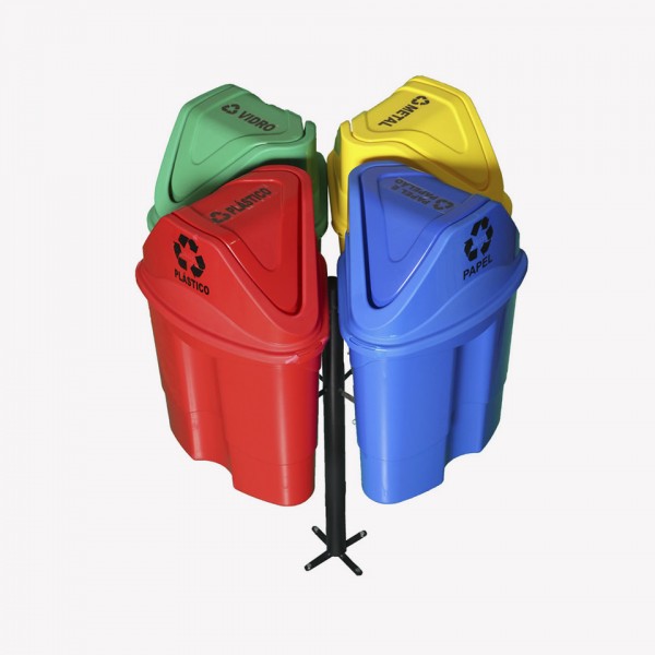 Suporte Carrossel Jg. COM 4 Lixeiras 50 Litros (Triangular/Tampa Vai e Vem)