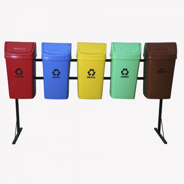 Suporte Seletivo COM 5 Lixeiras 50 Litros B Tampa vai e vem